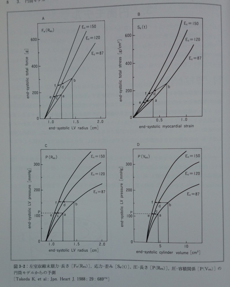導かれた簡単な数式は左室収縮末期関係に関する幾つかの知見を理論的に説明することができる174, 181)。