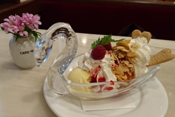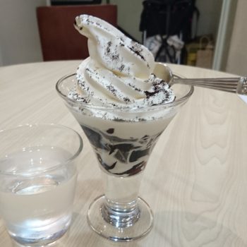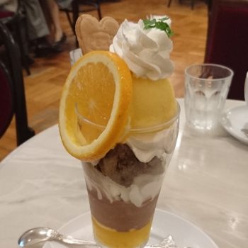 黄桃とアイスクリームが 可愛らしい器に入っており 一度食べて…