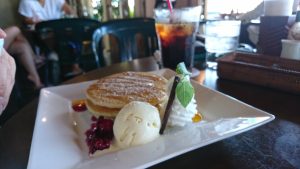 一面に広がる海の見える喫茶店で潮の香りに冷たいコーヒーとパンケーキにて、ゆったりとした休日を過ごしました。