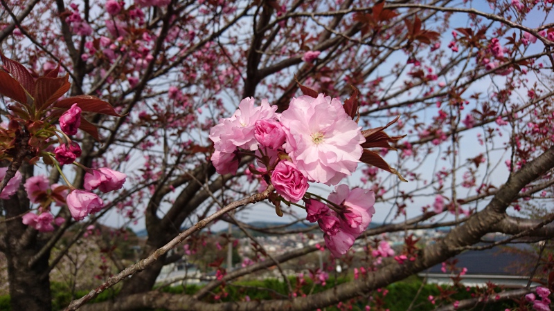 当院では染井吉野が終わって、今は八重桜と花桃の花が咲いてます